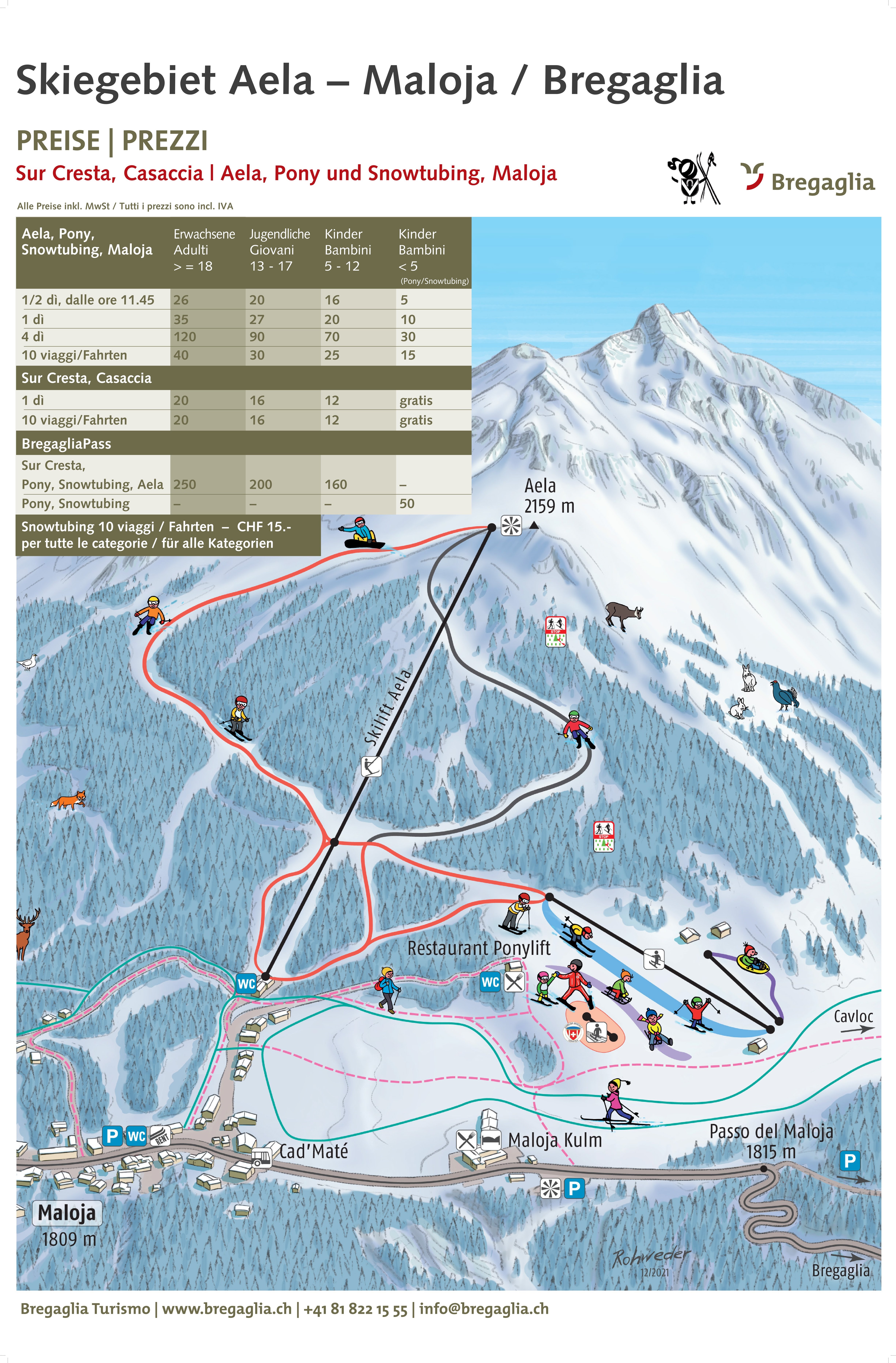 È valido per tutti gli impianti di risalita in Bregaglia (Sur Cresta, Pony, Snowtubing, Aela).